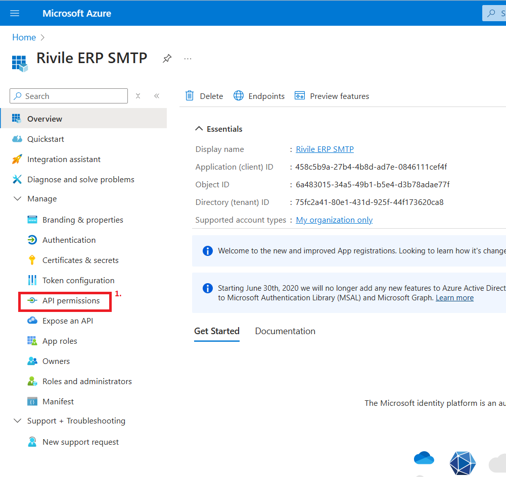 Iš meniu kairėje pasirinkite API permissions.